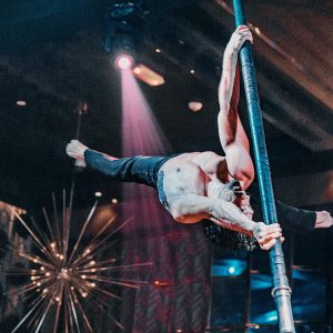 The one-handed handstand acrobat showcases incredible strength and balance, defying gravity and leaving audiences in awe. With impressive acrobatic moves, the artist demonstrates their agility and flexibility, creating a mesmerizing and unforgettable performance. This display of human strength and talent is sure to leave a lasting impression on any audience.